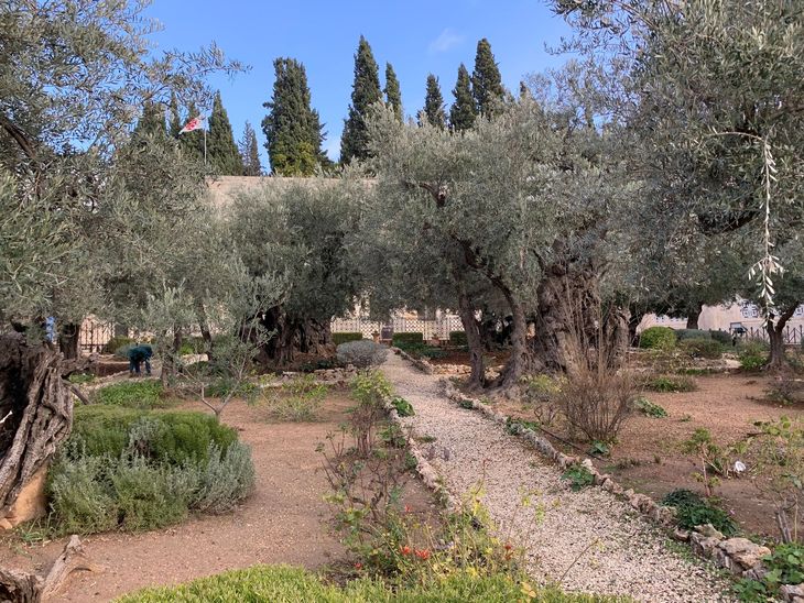 The photo you see is of the Garden of Gethsemane. After the meal with the disciples, Christ went here to pray. Knowing he was facing death, he prayed not my will but thine. How often do we pray not my will but yours.